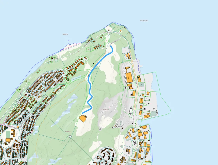 Helt nord på Tromsøya går det en anleggsvei fra Ringvegen og opp til kommunens vannbehandlingsanlegg på Varden. Her har vi lagt hovedvannledningen som forsyner Tromsøya og fastlandet med drikkevann fra Ringvassøya.