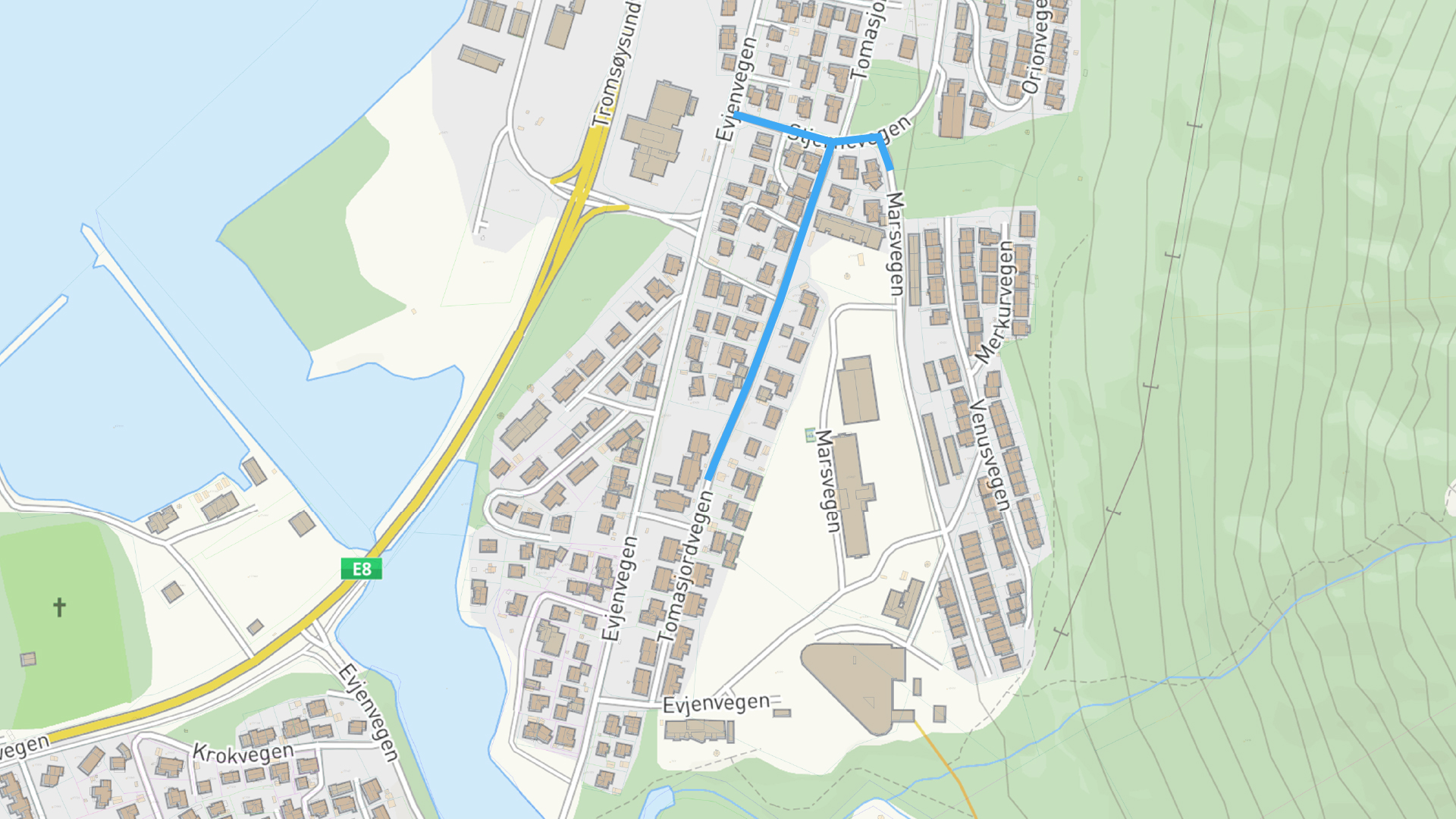 Overvannsledning fra Marsvegen til Evjenvegen er i så dårlig stand at den skal byttes ut og legges i en ny trasé. I dag går deler av overvannsledningen under privat grunn, men den nye skal legges i offentlig vei. Da sikrer vi god tilgang til ledningen for fremtiden.